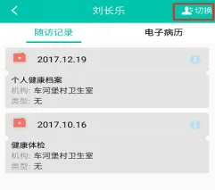 (5)在“健康档案”界面中点击“切换”,可调阅“家庭成员”档案信息,如图23所示;