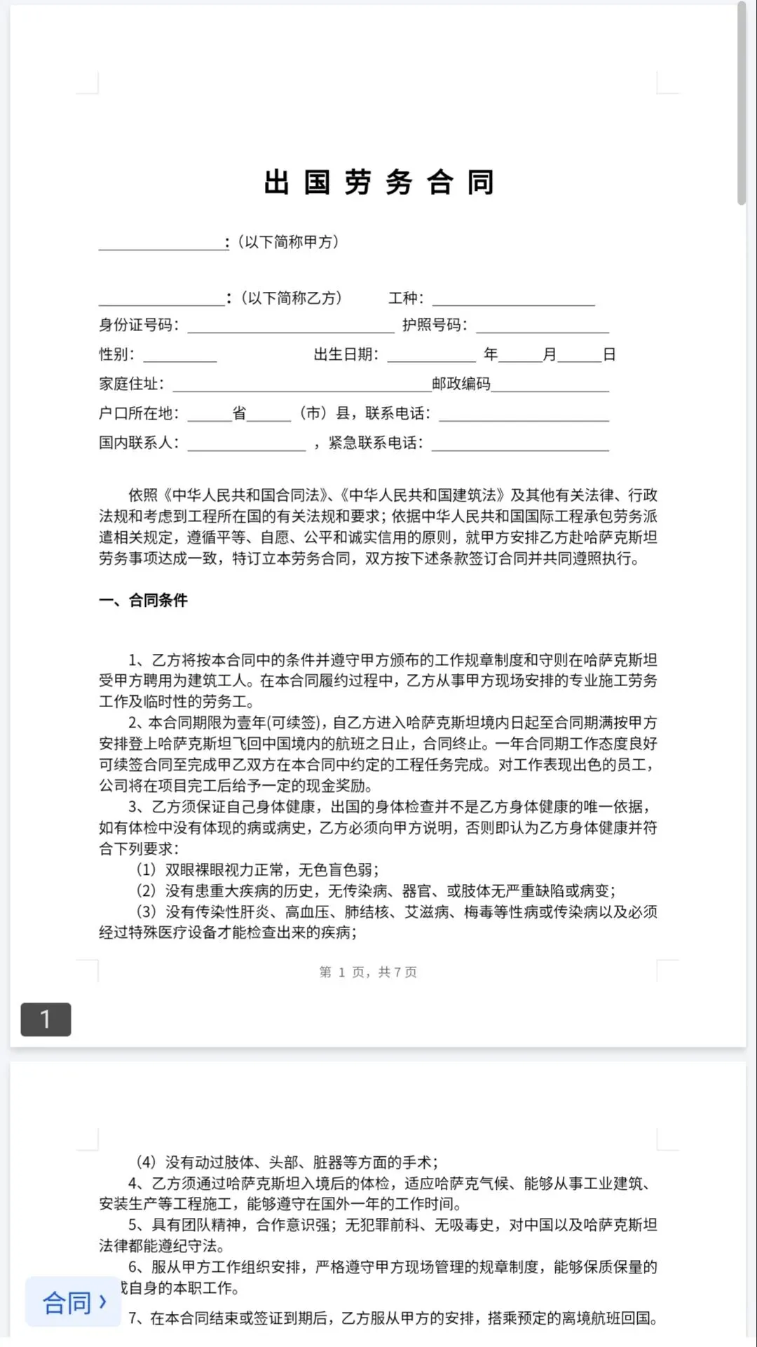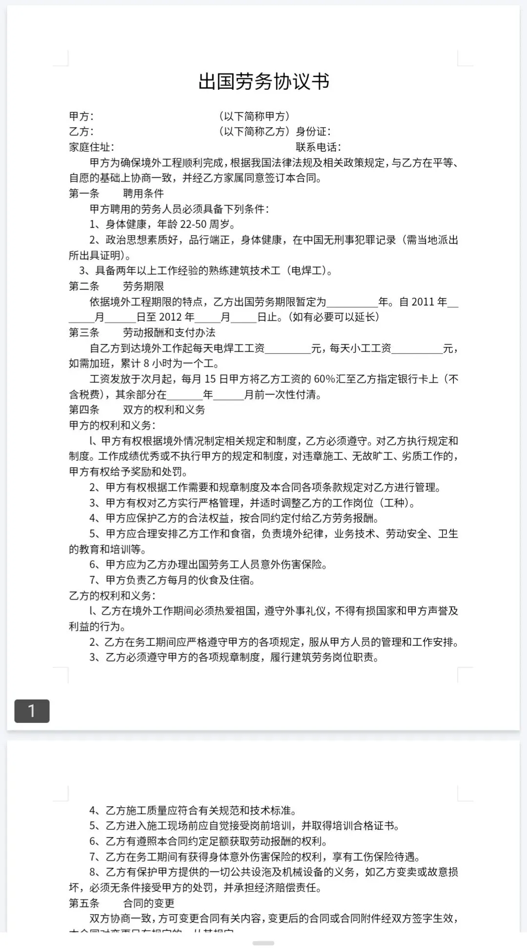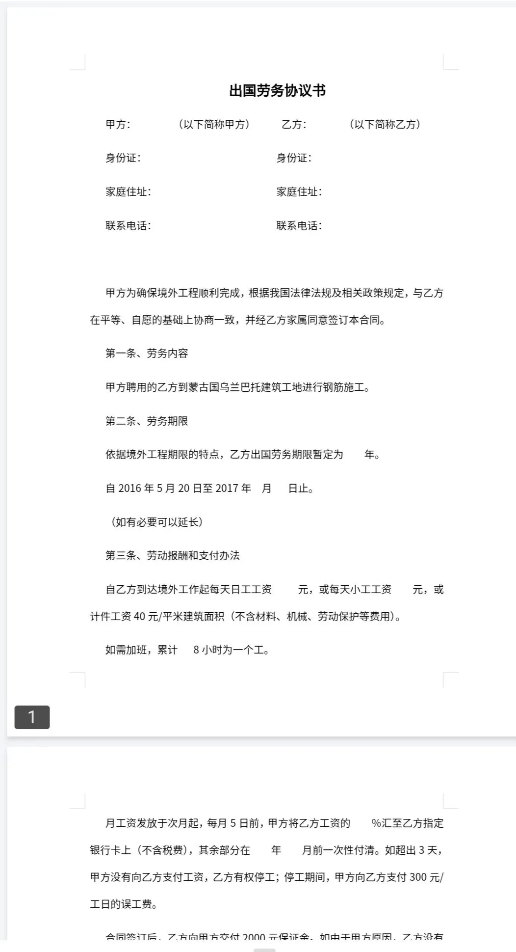 出国协议模板(免费下载打印保存)