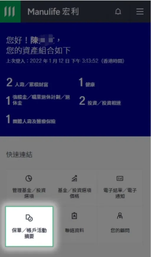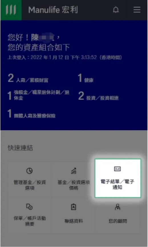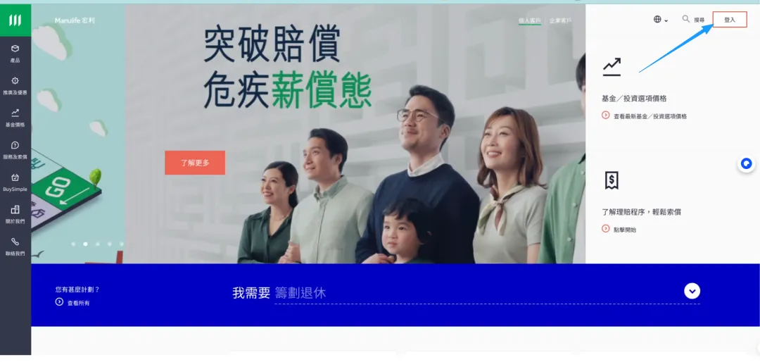 宏利Manulife – 网页端如何登录网页端访问宏利官网,点击右上角的“登入”,再选择“个人客户登入”。
