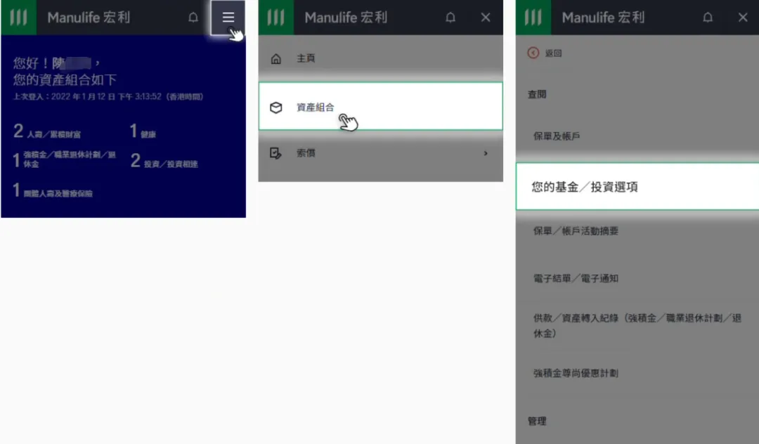 APP的基本操作管理基金/投资选项:你可以轻松转换现有基金或更改未来投资指示,根据自己的财务规划和风险偏好,灵活调整投资组合。
