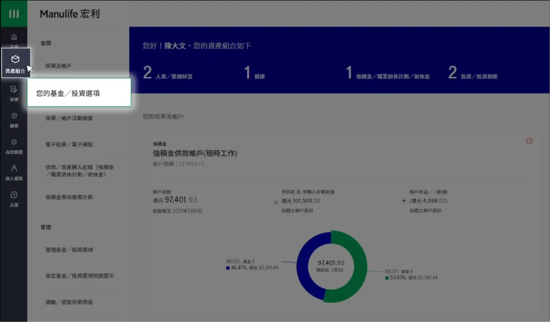 管理基金/投资选项:与APP端类似,网页端也可以让你轻松转换现有基金或更改未来投资指示,满足你的投资需求。
