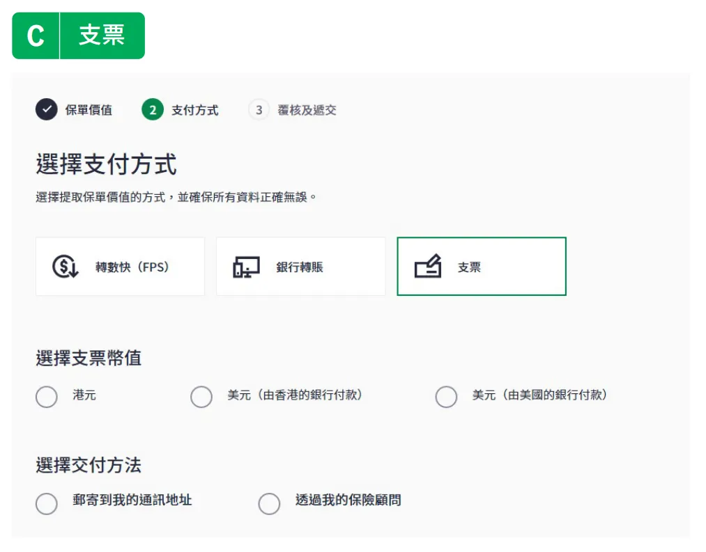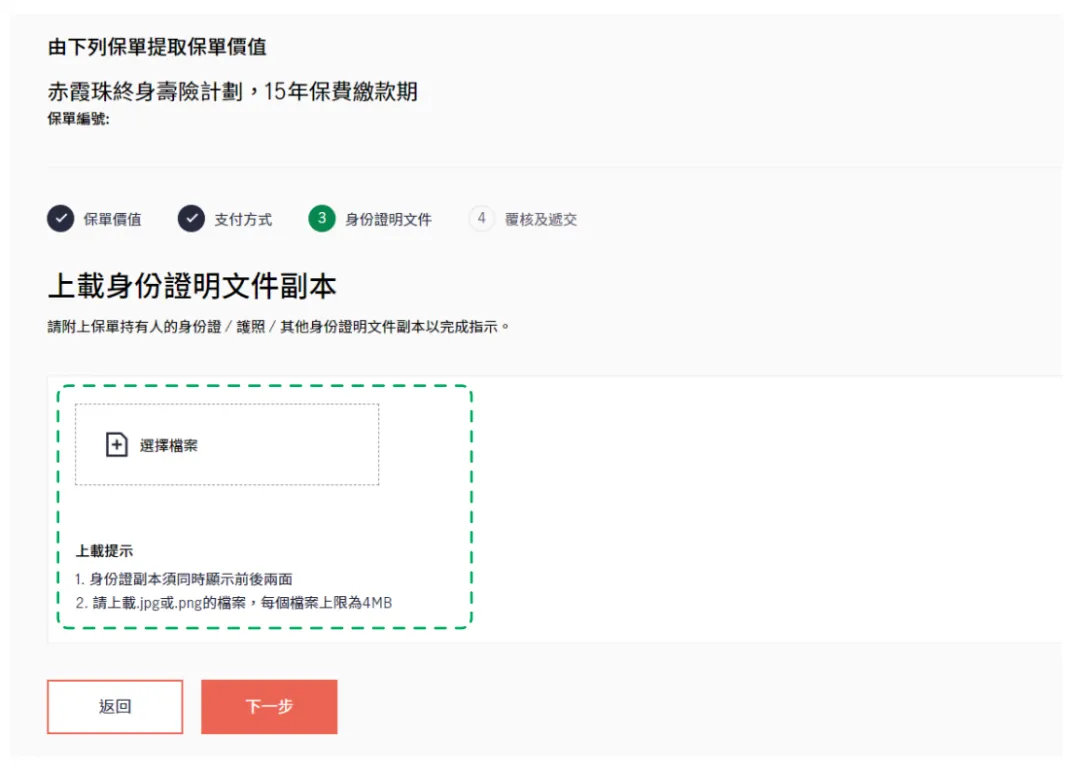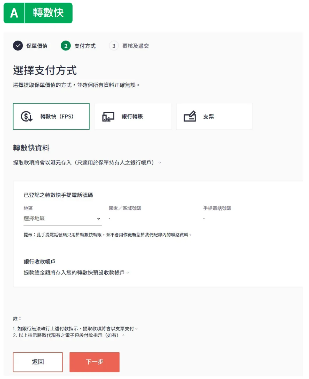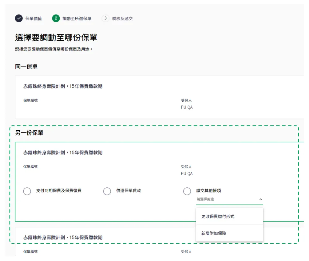 选取合资格的保单,填妥相关资料,复核资料并同意使用条款后,递交指示。