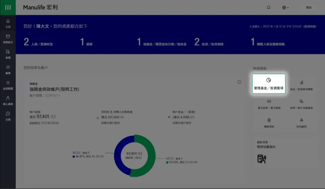 管理基金/投资选项:与APP端类似,网页端也可以让你轻松转换现有基金或更改未来投资指示,满足你的投资需求。