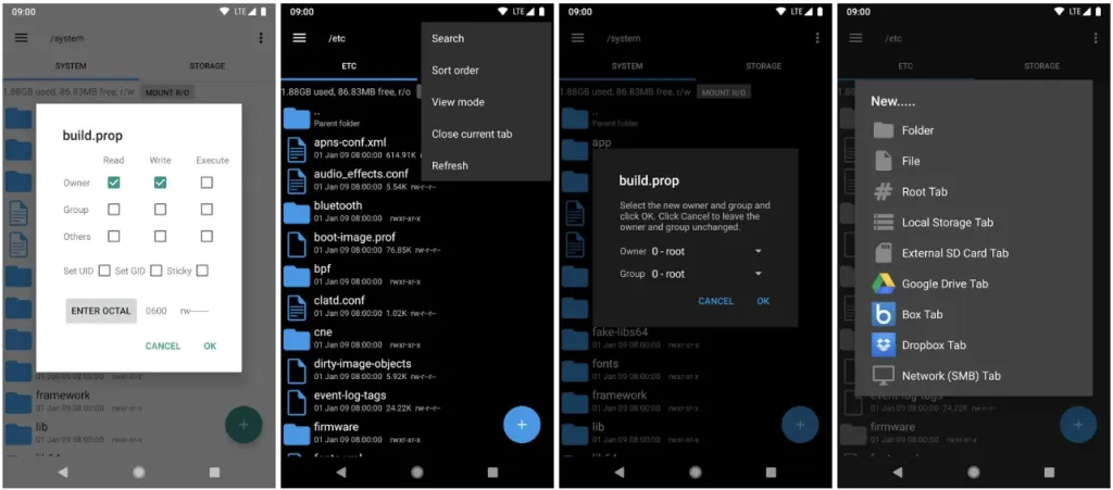 Root Explorer「RE管理器」现新版全新Material Design设计风格!应用功能包括:SQLite数据库查看器、文本编辑器、创建和提取zip/tar/gzip文件、提取rar文档、多选、执行脚本、搜索、重新挂载、权限管理、书签、发送文件(通过蓝牙、邮件等)、图片缩略图、APK二进制XML查看器、更改文件所有人/组属性、打开方式,以及MD5校验。总之是非常强大了!