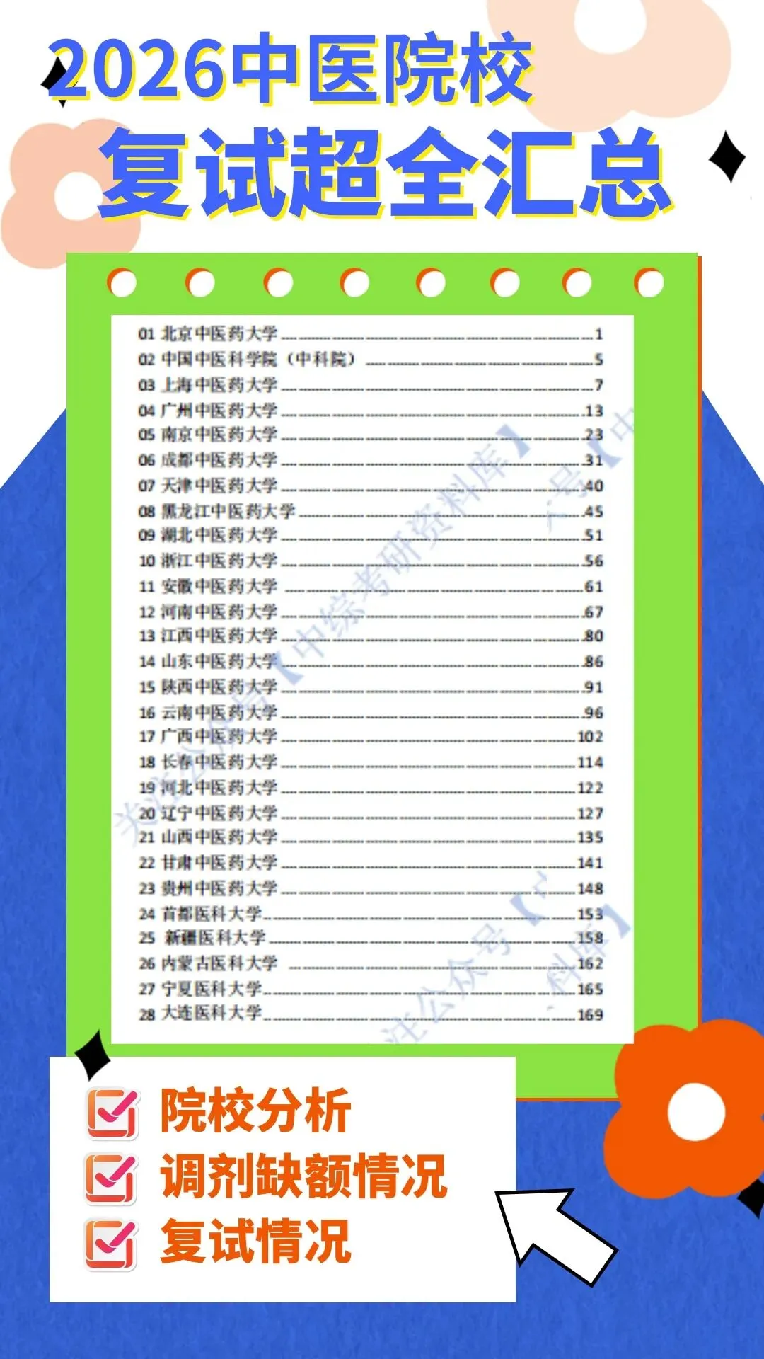 172页中医院校复试/调剂超全汇总pdf. 关注!关注~分享最新考研资讯,师兄随时在线!一起上岸! 考研/保研/二战~咨询,随时dd 📣📣📣📣 师兄整理、汇总了中医院校复试/调剂汇总 宝藏整理,建议各位中医学子们收藏 篇幅有限,关注【中综考研资料库】 回复【大礼包】领取PDF打印版 [宏医教育=复杂医学,简单领会!] 【26考研复试班】 报名方式:扫码添加师兄即可 对接暗号【复试班】