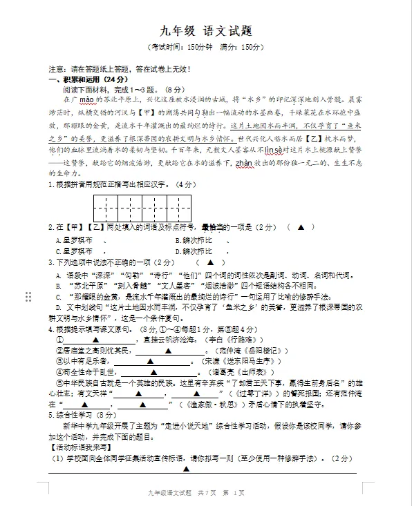 九年级语文试题
