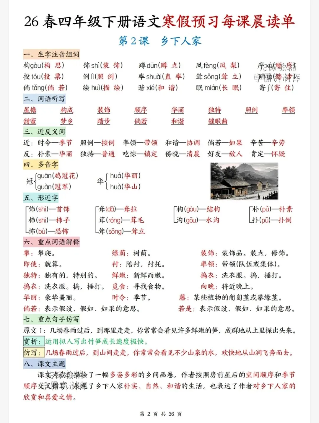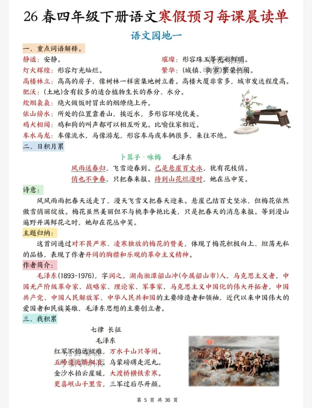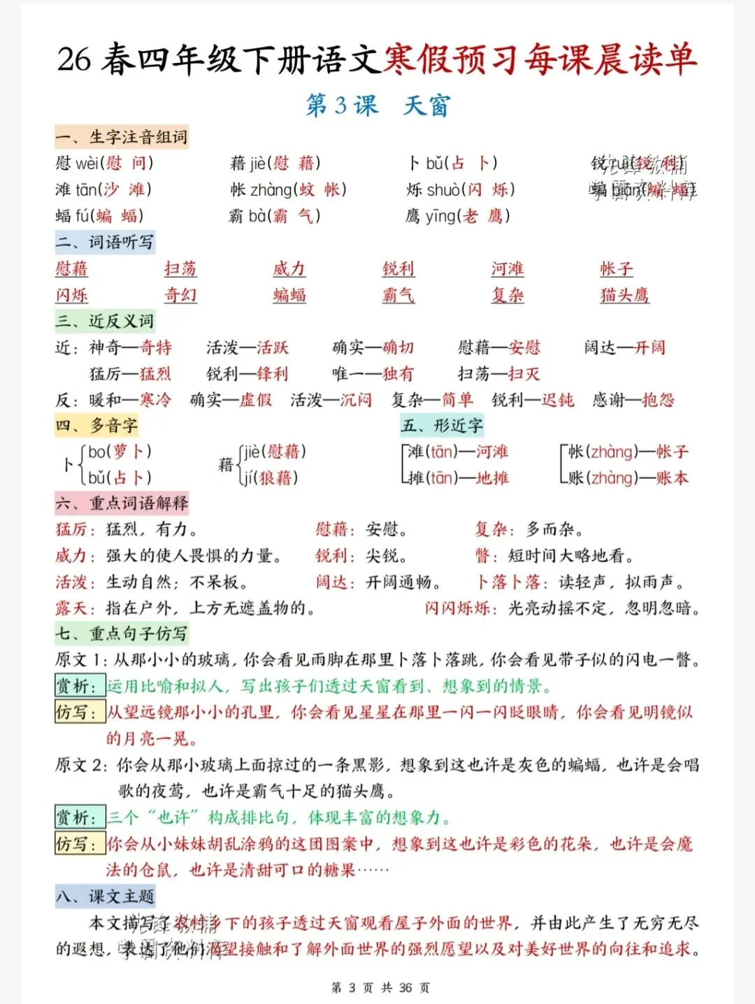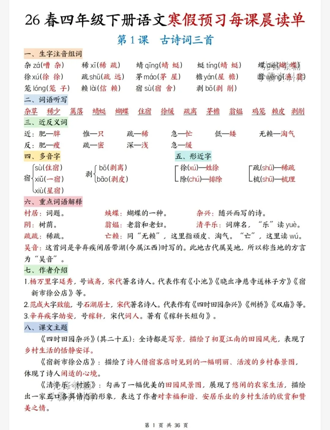 今天给大家整理了26春四年级下册语文1-4单元寒假每课晨读单,转发给朋友或班级群,受益更多人,帮助孩子学习!