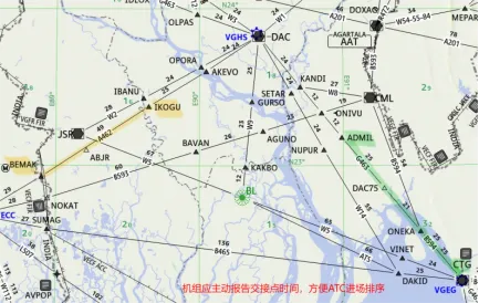 CTL: CBJ685 Dhaka approach, identified, just follow STAR, ADMIL-1E arrival for ILS approach runway 14, descend to FL100.