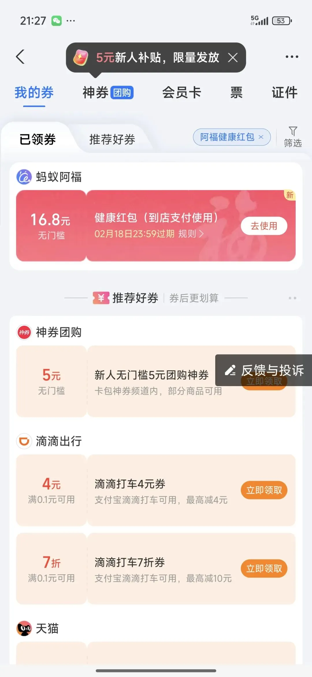 蚂蚁阿福app可以领取16.8元红包 下载【蚂蚁阿福】app有机会领取到16.8元无门槛红包 线下支付、扫码支付、购物都可以使用 只需要下载app后,简单在里面跟AI对一句话,随便问个问题,就可以领取了 我已经领取了16.8元红包 随手寄了一个顺丰快递就使用了 减少了16.8元红包 不得不说阿里为了抢占更多人群也是下了血本啊