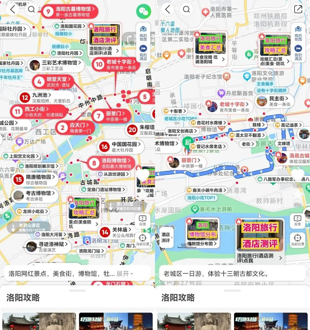 软件还有一个比较牛的功能,我们可以直接在地图上看到各种美食或者是景点推荐排名、酒店等等,还有各种路线也可以在地图上面看到。直接就把我们的行程给填的满满的。