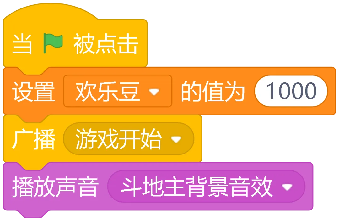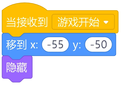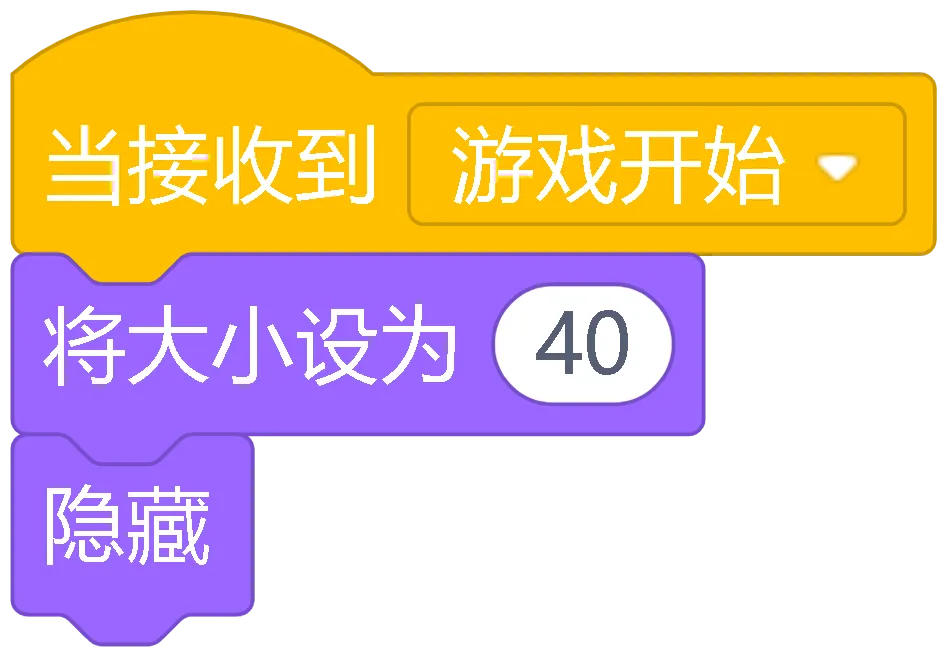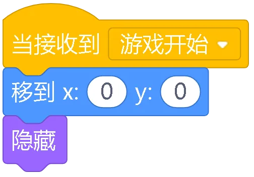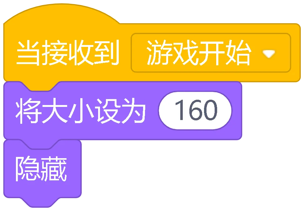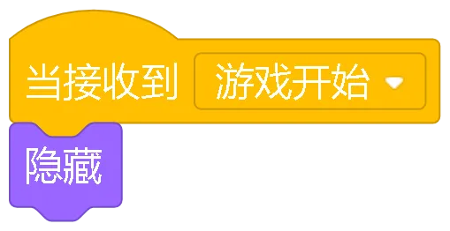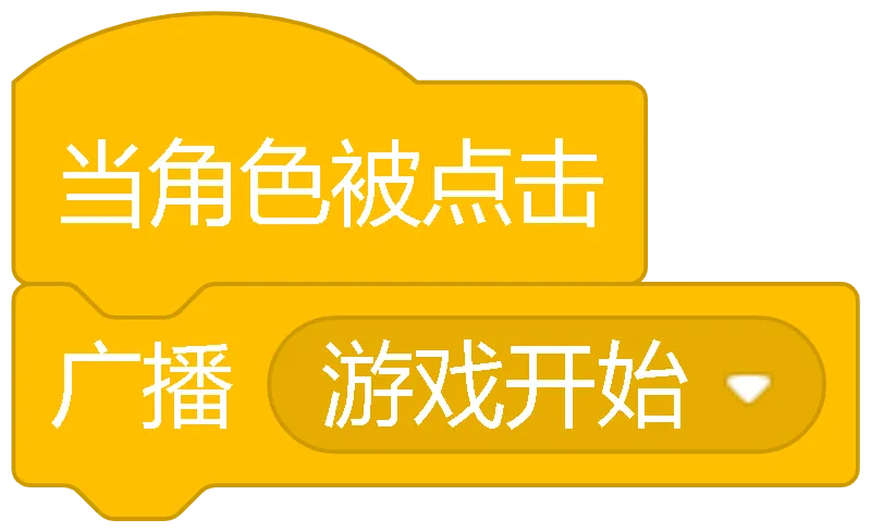 当绿旗被点击:游戏的开始按钮,点击它游戏就开始了,所有角色都会准备好