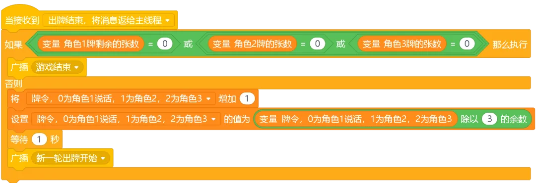当接收到”主角出牌结束,通知主线程”广播时,牌1角色会: