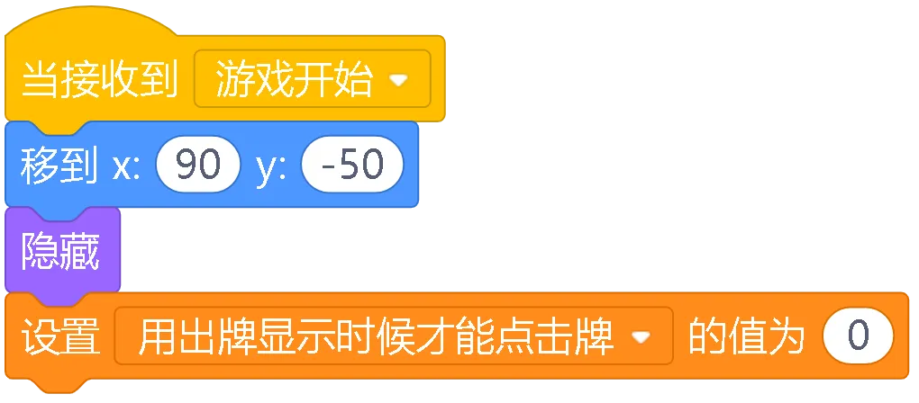 隐藏/显示:就像变魔术一样,让角色和牌在需要的时候出现,不需要的时候消失,比如游戏开始前先把牌藏起来,开始后再显示