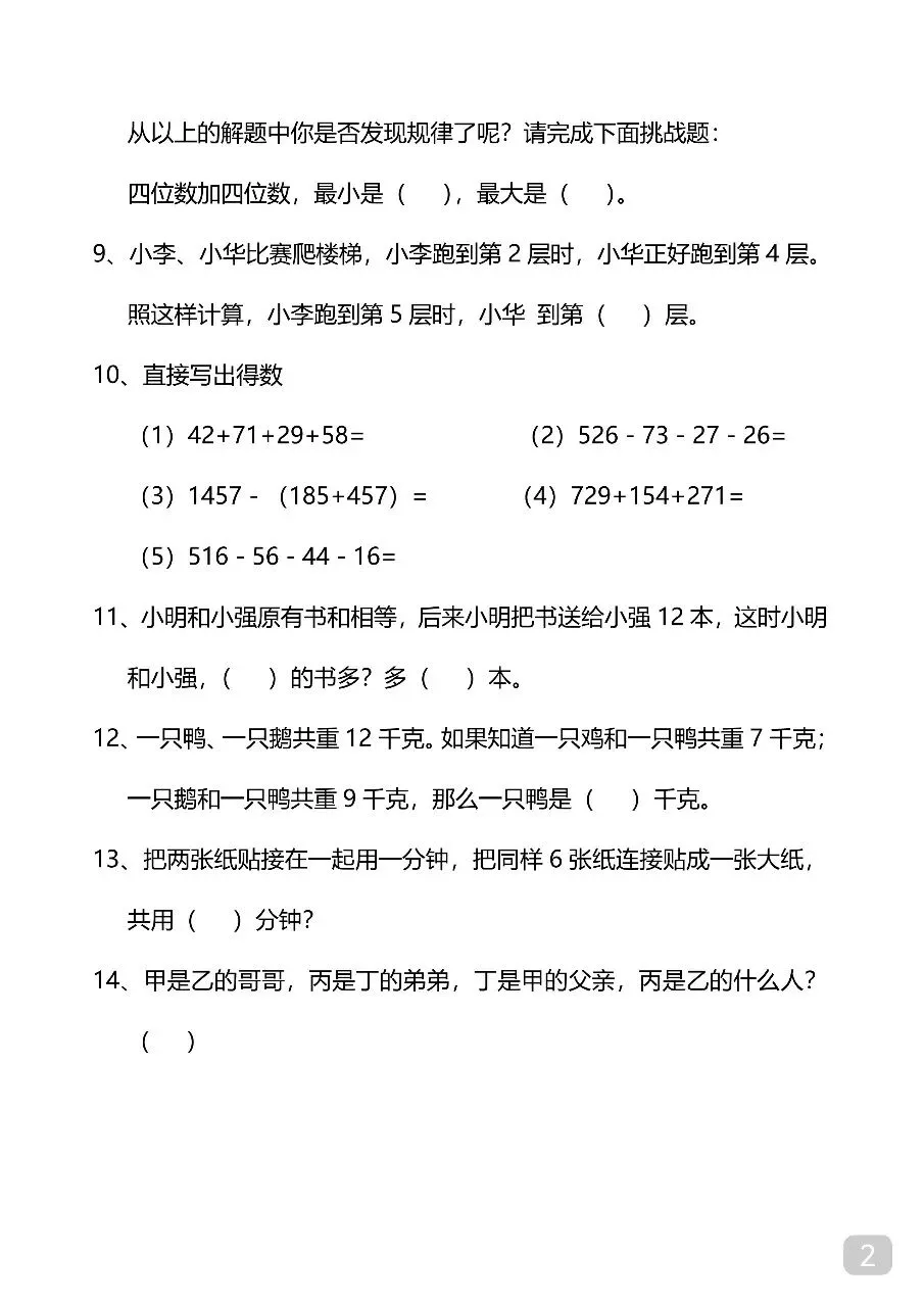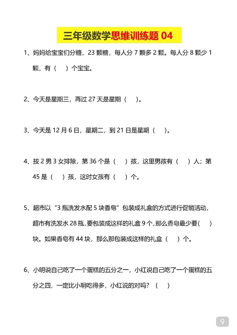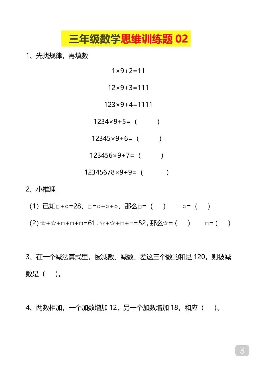 三年级(下)数学 思维训练题.pdf