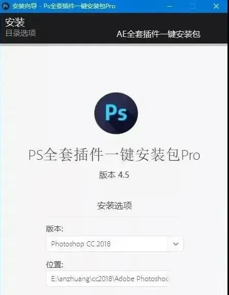 3、软件能自动识别 PS 软件版本和安装位置,点击安装即可;