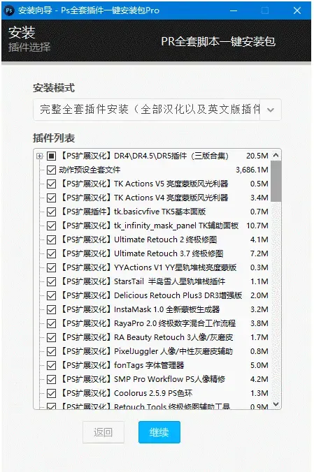 PS插件一个一个安装太费劲了,深有感触,麻烦不说还容易出差错,这款集成的插件有5G大小,当然你也可以自由选择你想安装的插件,具体看下图,还有挺多的插件,能提升工作效率,来我这里等你发现哦。