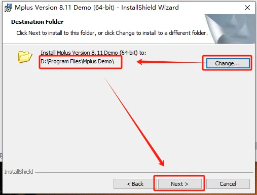 第五步:点【Change…】,将安装位置改为D盘,然后点【Next】。