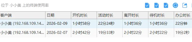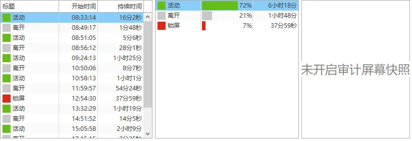 你锁屏去厕所、去抽烟、去楼下拿快递,它全记着。哪天几点几分离开,离开多久,一天累计离开多少次,一清二楚。