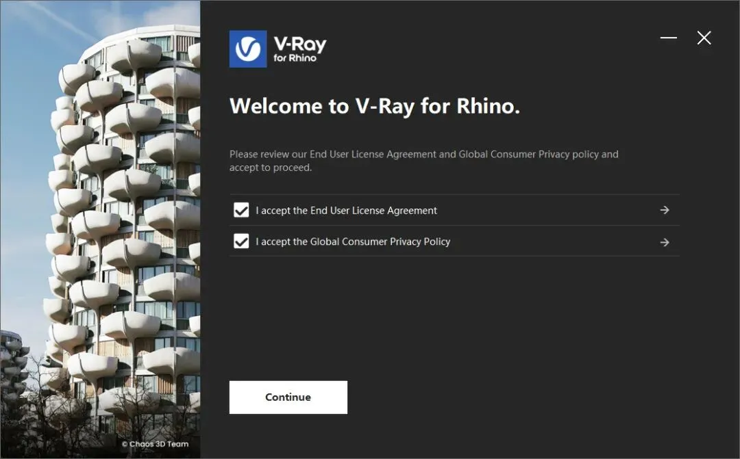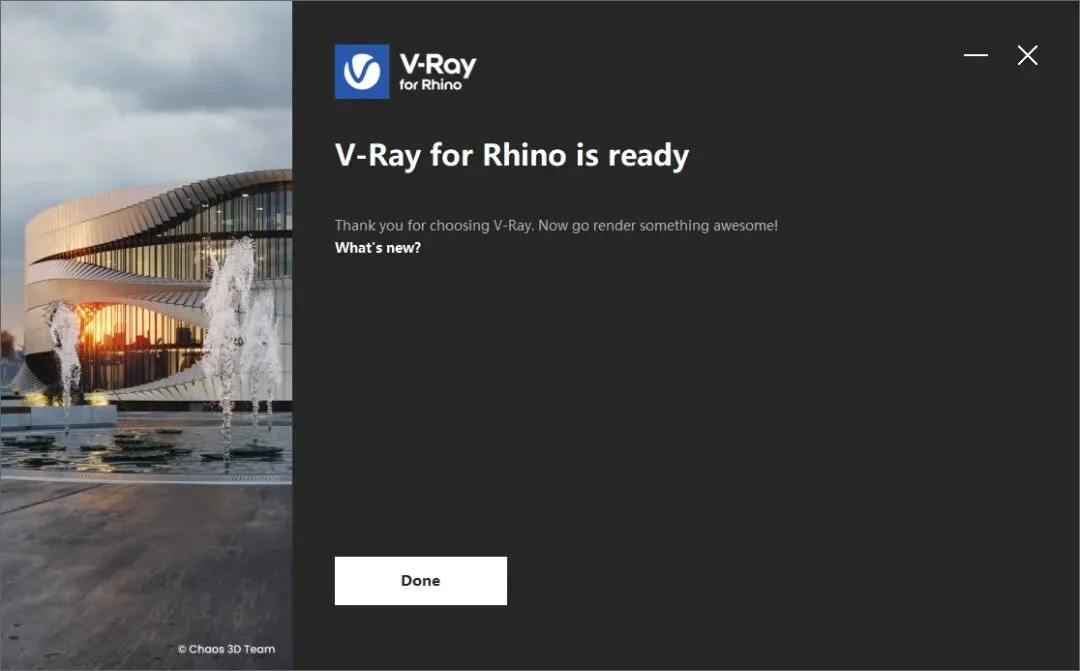 与上一版本相比,全新的V-Ray 7 for Rhino版本进行了全面升级和改进,加入了新的散布功能,可以轻松进行场景设置,从各种应用程序无缝导入 .vrscene,并更快地将作业提交到 Chaos Cloud 等,还有改进视窗材质可以直接在 Rhino 视窗中展示程序纹理及其调整;支持更流畅的 V-Ray 场景导入,支持导入Chaos Cosmos IES 灯光,以及V-Ray for Grasshopper增强功能,可以通过自然的大气深度实现写实天空效果,或者加入雾和霾,制作具有真实的光线散射效果。ps:这里小编带来的是犀牛vray渲染器(V-Ray for Rhino 7-9),此版本含相应的补丁文件,可以完美成功激活软件,其详细的安装教程可参考下文操作。