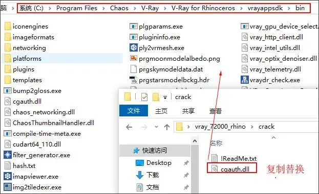 拷贝cgauth.dll到【C:\Program Files\Chaos\V-Ray\V-Ray for Rhinoceros\vrayappsdk\bin】