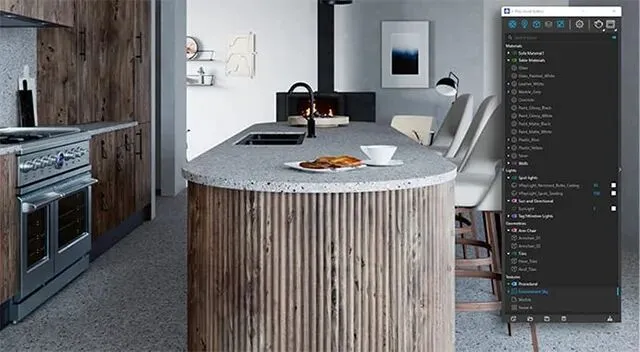 在渲染完成后轻松微调任何灯光的光照效果。可以将灯光分组,调整灯光亮度、颜色和灯光材质,创建最佳展示效果。