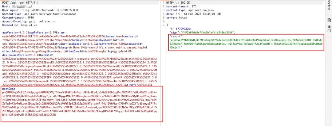 直接开启小黄鸟进行代理转发即可抓取到数据包,可以发现数据包和返回包均进行了加密