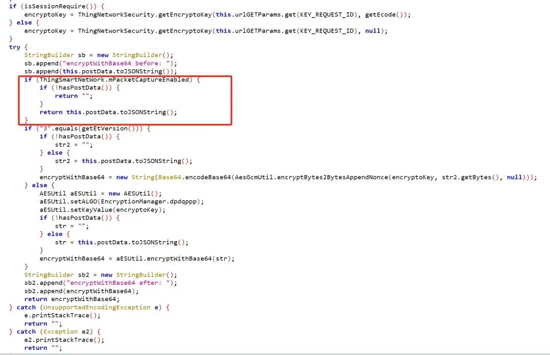 根据前面的分析可以得知只要将ThingSmartNetWork.mPacketCaptureEnabled的值修改为true,即可绕过加密。