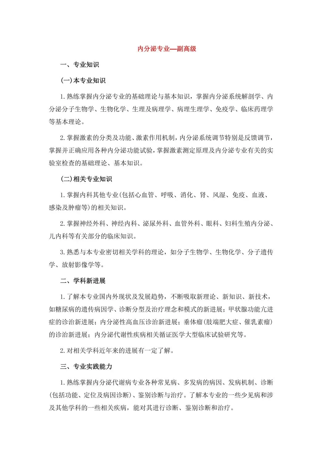 高级职称考试大纲节选