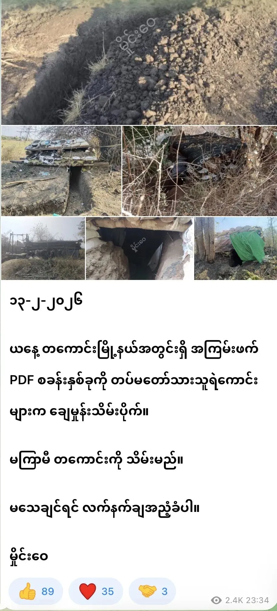 2月13日,在Thayetchaung市东南方向约12000米处,国防军部队与”KB组织”发生接触交火,敌方随后向东北方向逃窜。