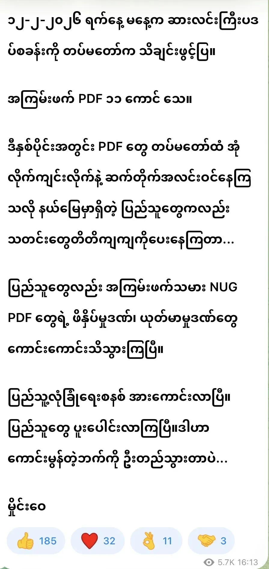 民众也已经深刻认识到所谓”NUG,PDF等 KB分子”的压迫与恶劣行径所带来的危害。