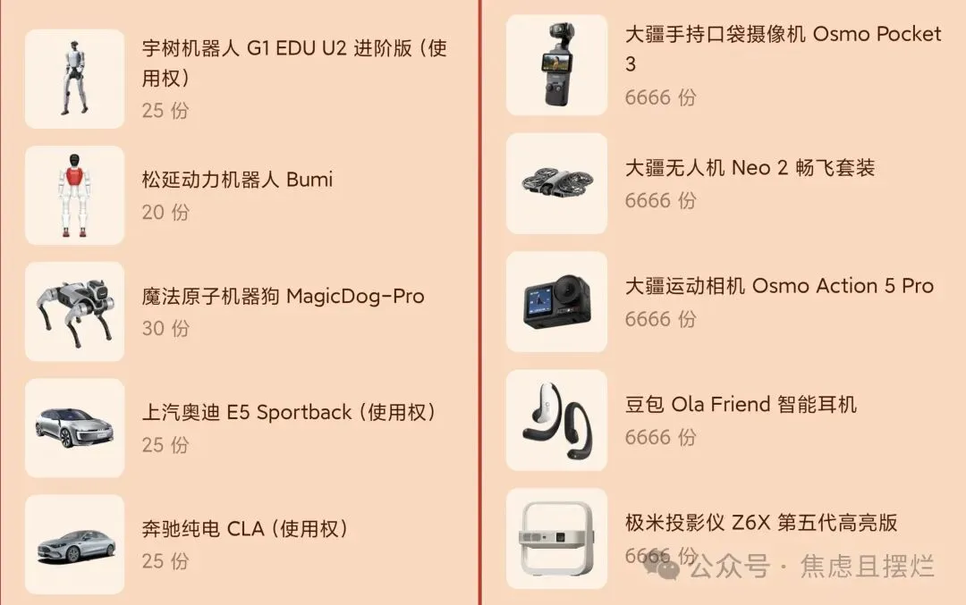 豆包app发新春红包啦!最高8888【有教程】 2月13号20点豆包第一轮新春活动开启 参与豆包AI新春互动即可抽取一次红包🧧 活动时间范围为2月13号晚上20点到2月16号中午12点 每人只有一次抽红包机会 入口在豆包首页右下角“豆包过年“活动弹窗 看下面这张图就知道具体位置了 2月16号除夕晚上还有多轮实物抽奖 除夕当晚根据春晚主持人的引导进行抽奖 以下是奖品介绍 此前元宝app,千问app都有此类活动,作者建了一个羊毛互助群,群里已经有很多伙伴互相帮助,薅到了满满羊毛,需要的宝子自行进入。