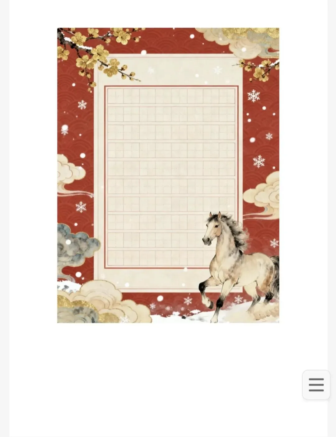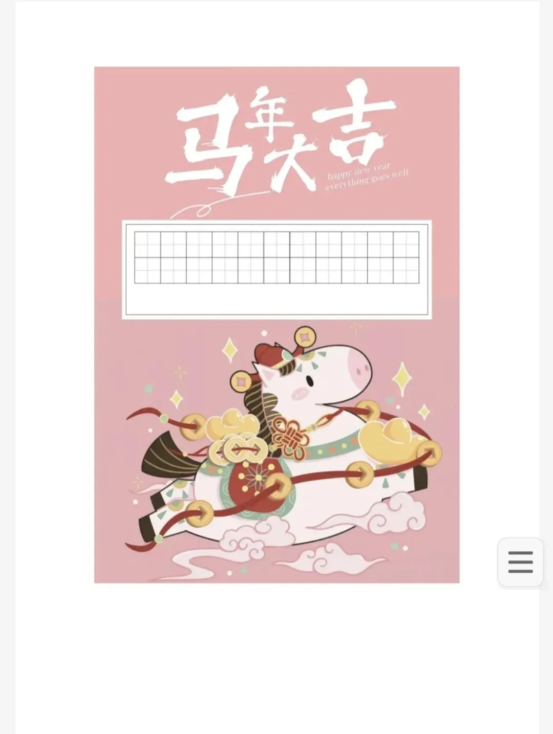 马年硬笔书法作品模板(免费下载打印)