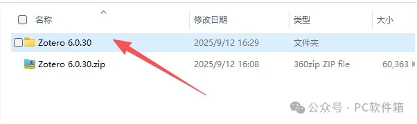 1.解压安装包:鼠标右击【Zotero6.0】压缩包,选择电脑上安装的解压软件,点击【解压到Zotero6.0】。