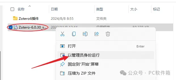 3.鼠标右击【Zotero-6.0.26_setup.exe】选择【以管理员身份运行】。