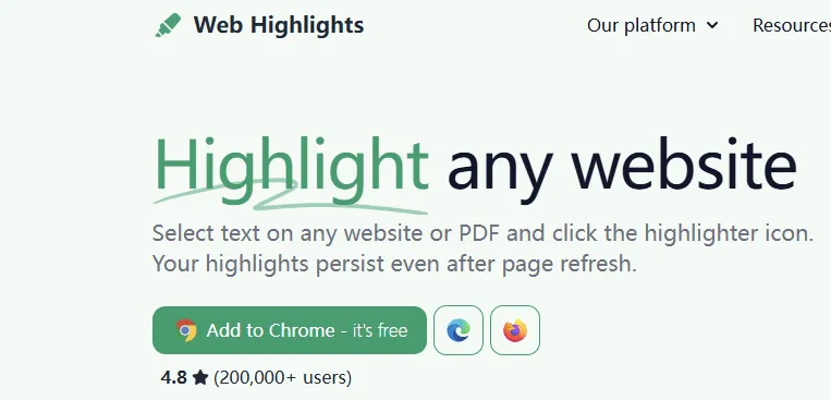 Highlights: 可以高亮网页中任意文本,进行批注,或者添加标签。