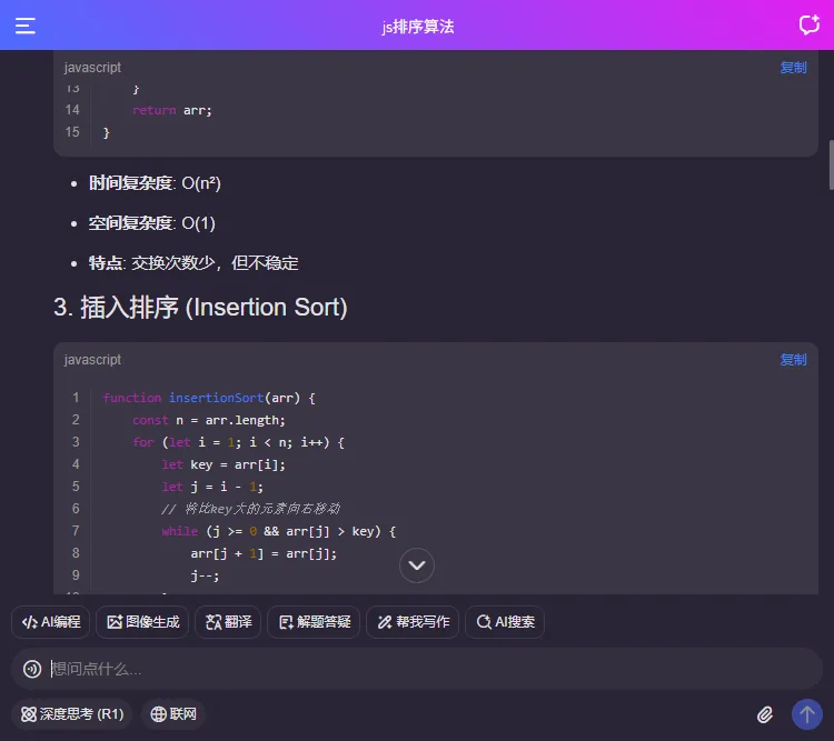 6. 支持各种代码高亮/复制代码、上下文多轮对话/本地会话存储