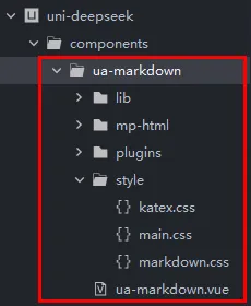 <template>    <viewclass="ua__markdown">        <mp-html:content="parseNodes" @linktap="handleLinkTap" />    </view></template>