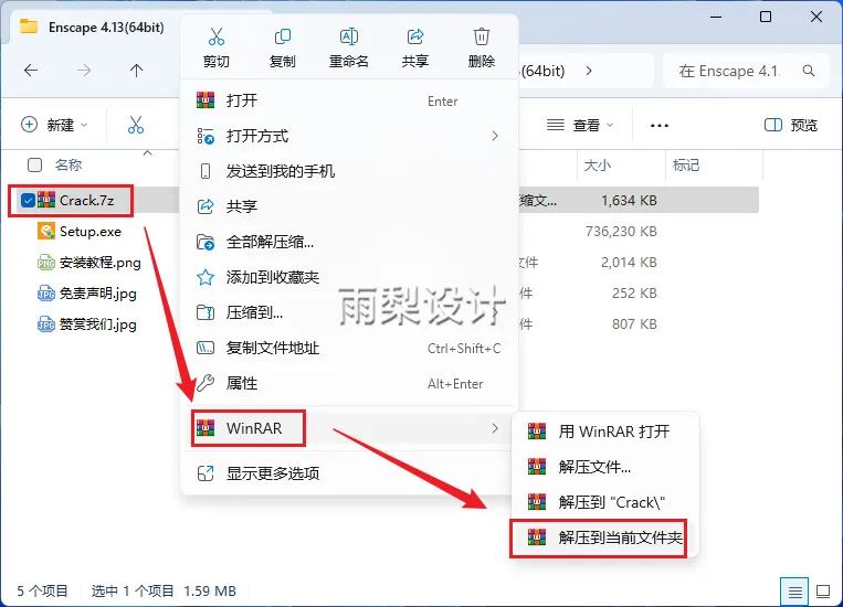 7.返回安装包;右键【Crack】选择【解压到当前文件夹】