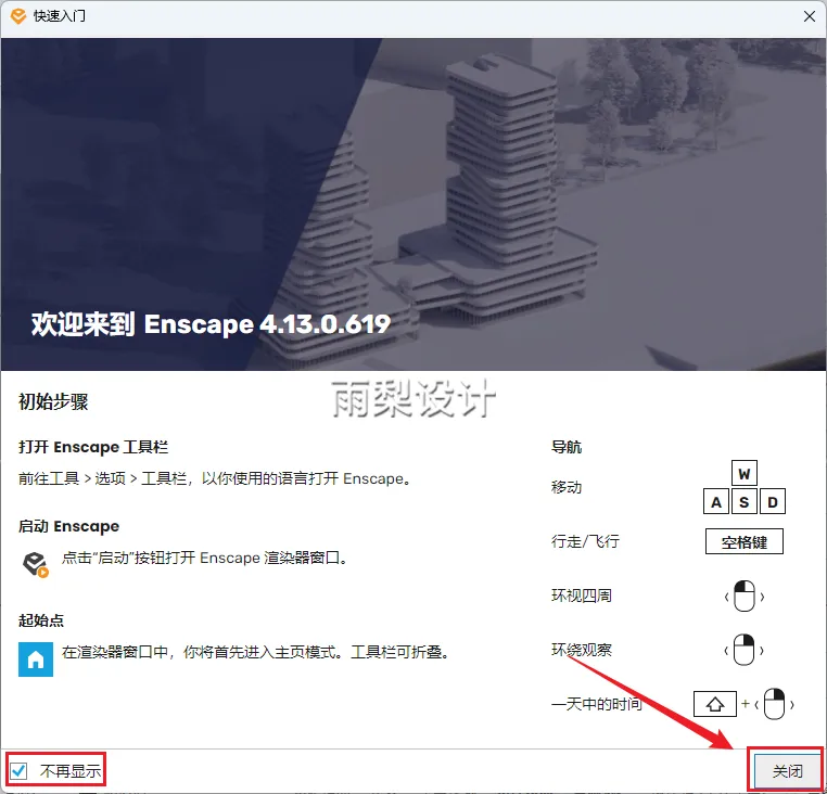 11.打开Rhino/Revit/SketchUp;勾选【不在显示】,点击【关闭】