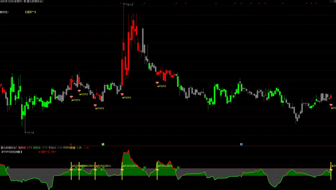 :主图 K 线由灰变红且出现 “RSRS” 信号,或副图数值上穿 0.7 红线,即可出击。 - 持股