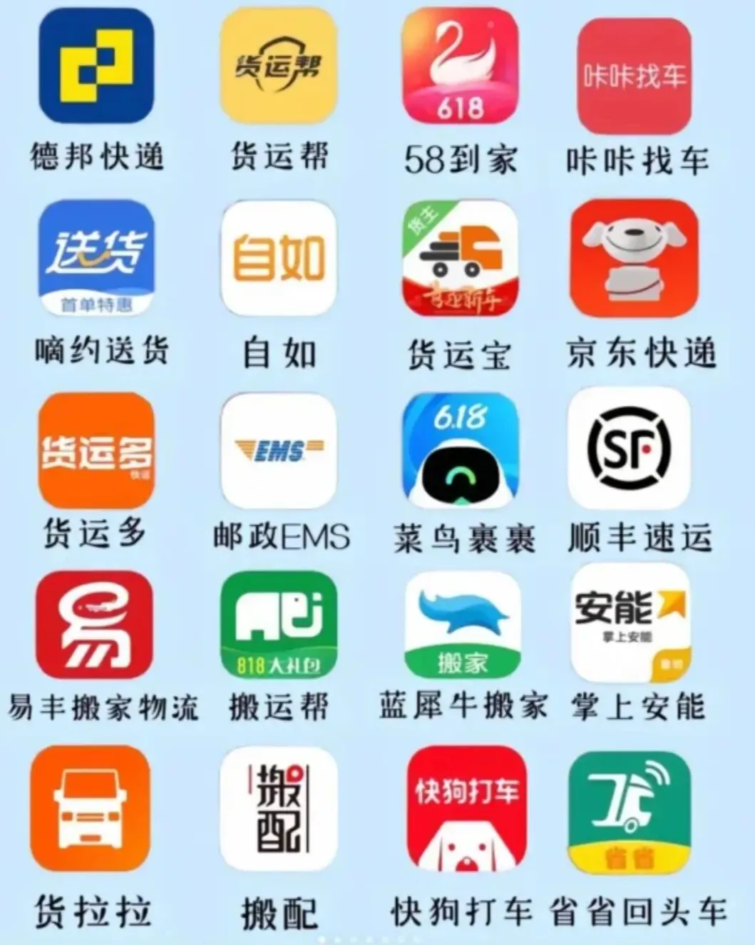 2. 快递物流类:菜鸟、顺丰、京东快递、中通/圆通等快递APP → 菜鸟裹裹小程序(能查所有快递)、对应快递官方小程序(寄件、查物流专属);