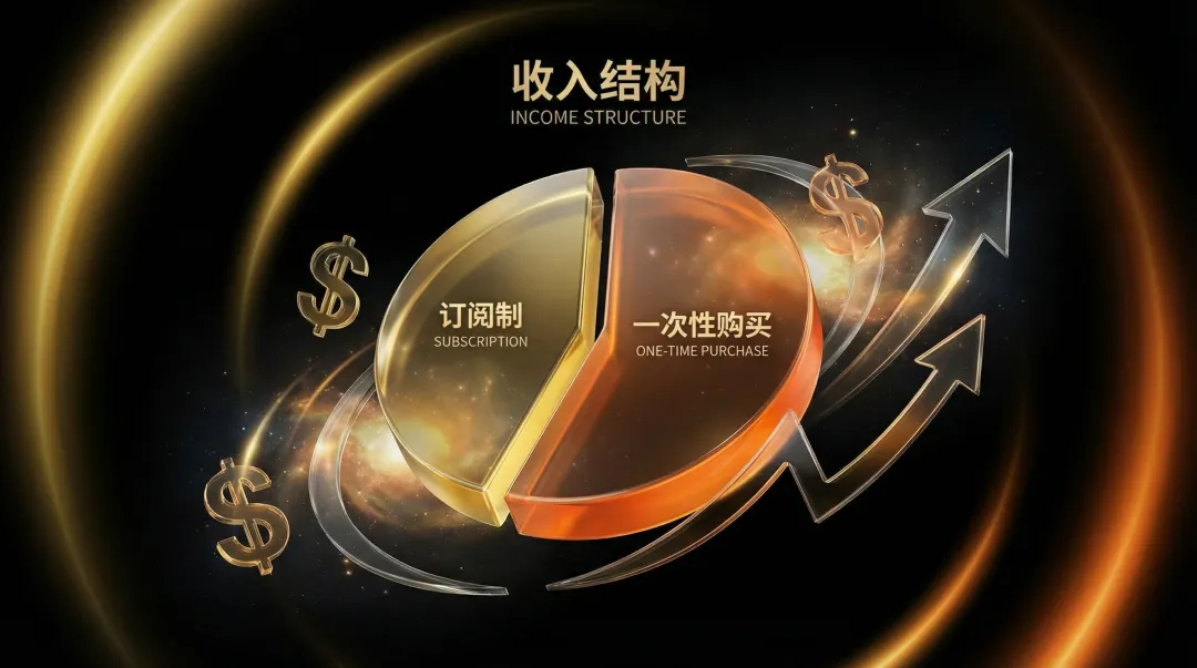 他的收入结构:– 年订阅占65%(用户留存率最高)– 月订阅占25%– 一次性买断占10%