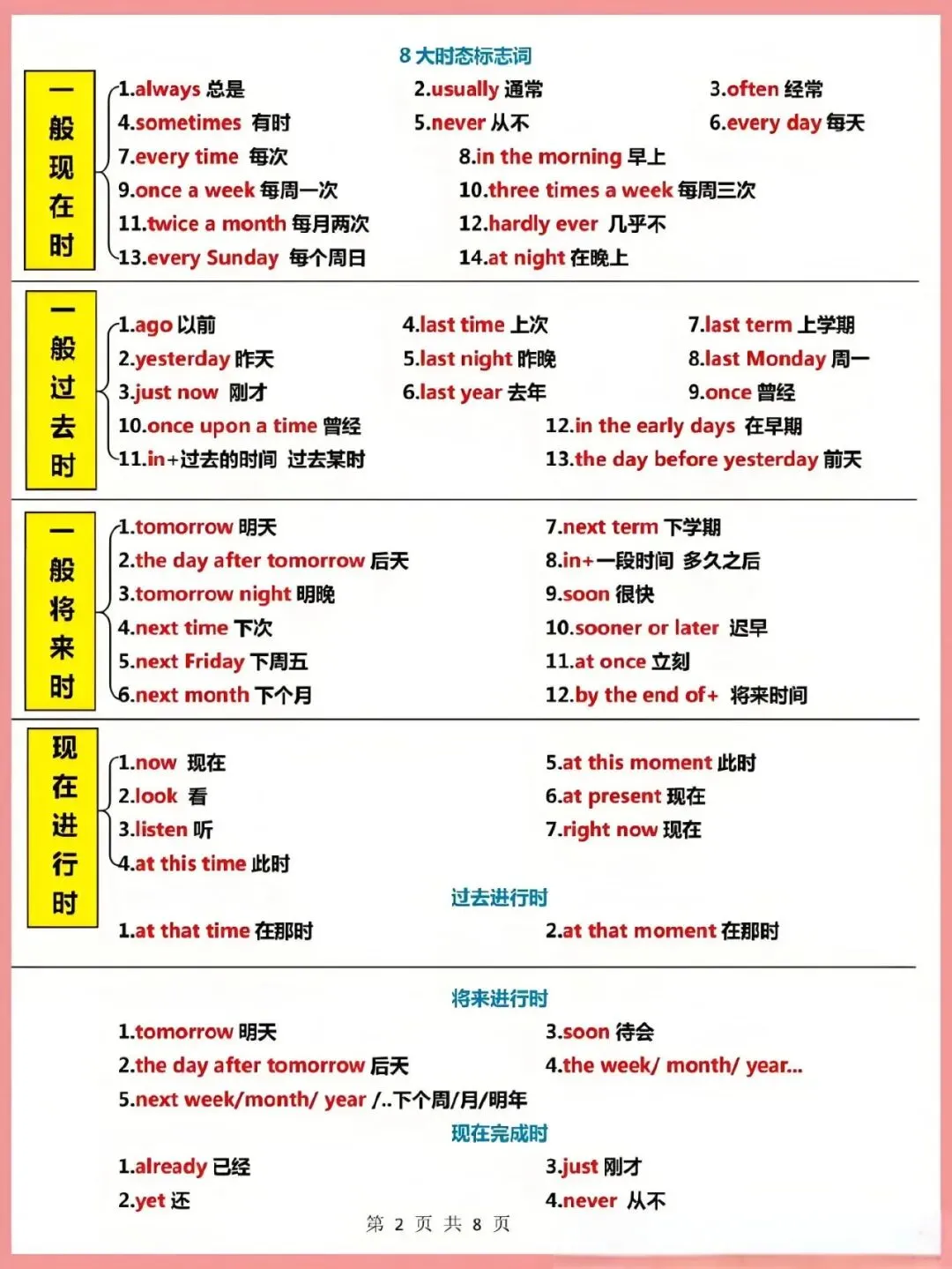 《8页纸吃透小学英语语法体系》,可免费下载打印