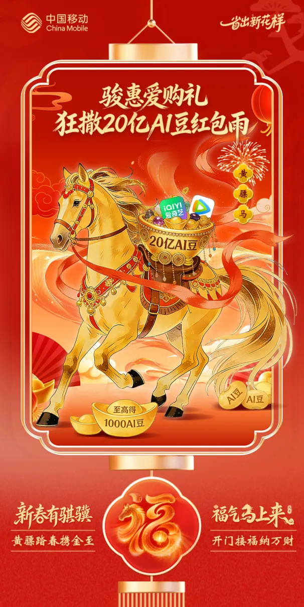 “跨移步,省一年”,中国移动APP以“省”为核心,将“以用户为中心”的初心融入实际行动,通过系列新春营销活动,精准匹配用户新春通信、消费、娱乐等全场景需求,这份新春诚意,不止于佳节欢聚时刻,还将延续为一整年的贴心陪伴。