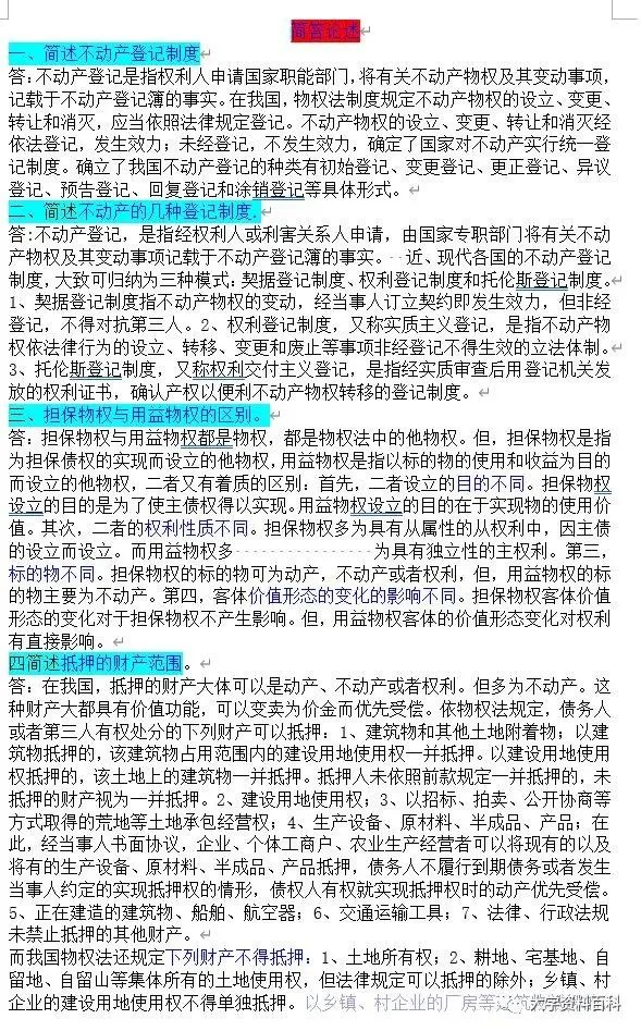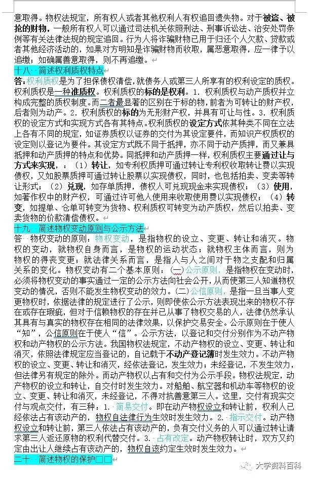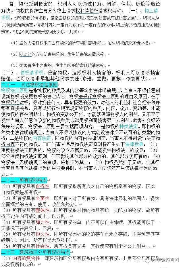 全套物权法期末复习资料PDF:知识点+笔记整理+题库,助你一周复习完物权法,高分通过物权法期末考试!永不挂科