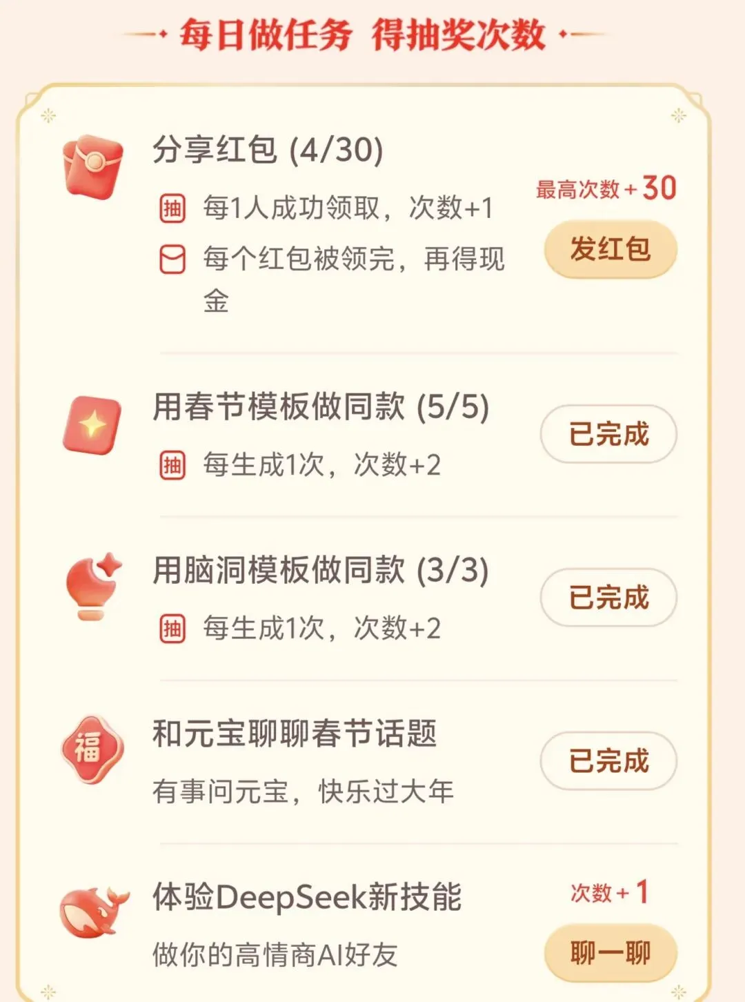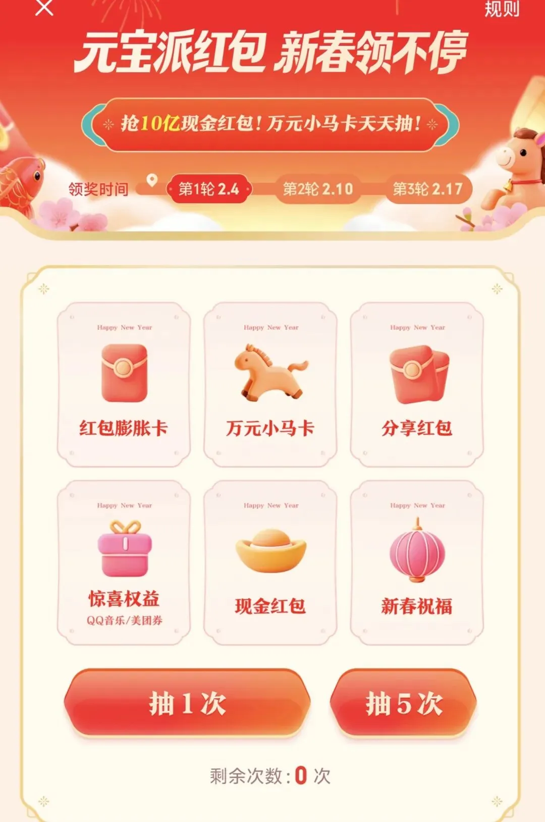 打开元宝APP 底部可以参与新春活动