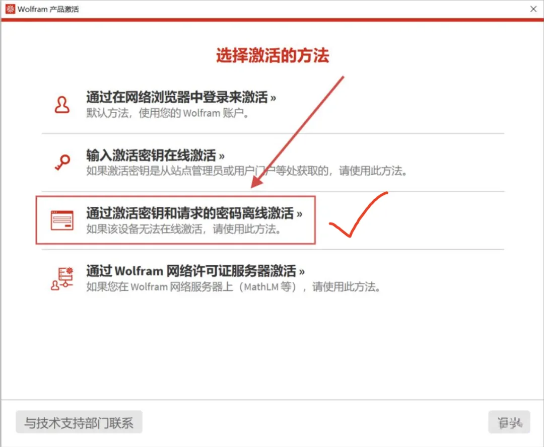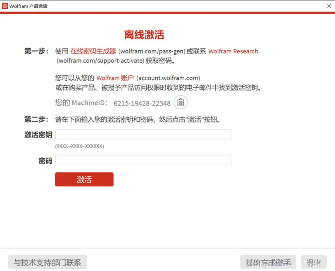 1、打开软件,选择右下角的:其他方式激活,然后点击【通过激活密钥和请求的密码离线激活】。