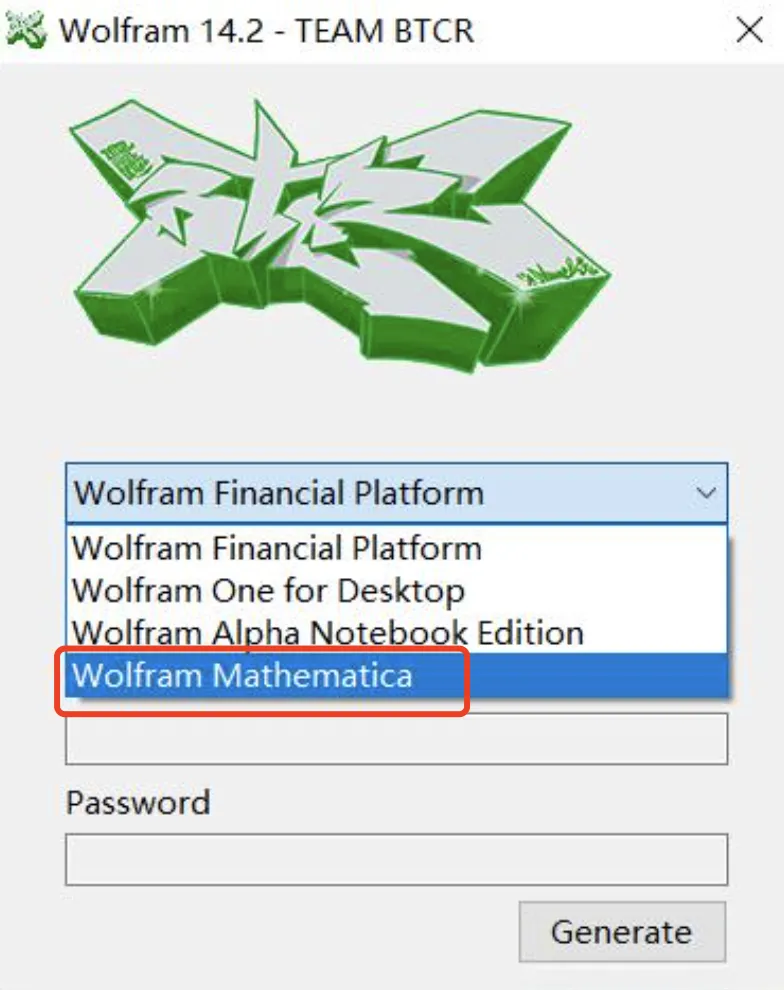 4、下拉框,选择:Wolfram Mathematica。