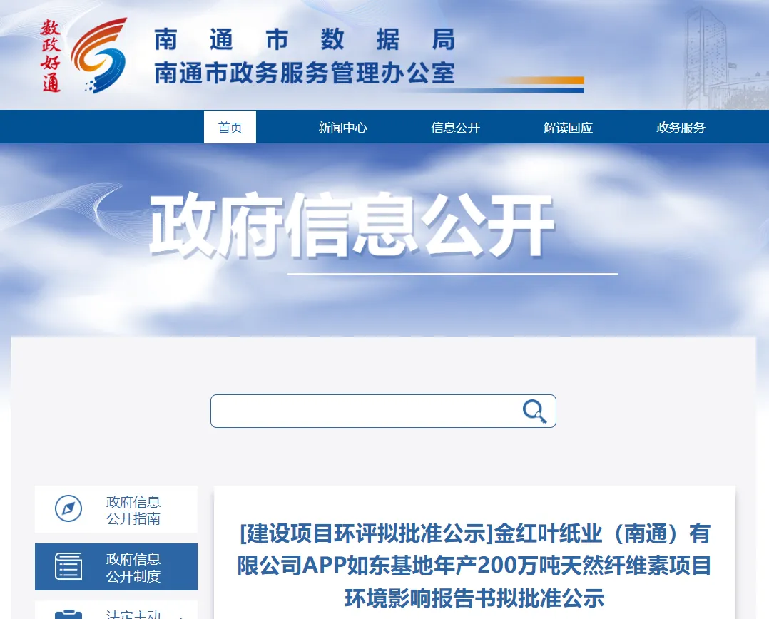 热点 | 金红叶纸业APP如东基地年产200万吨天然纤维素项目环评公示