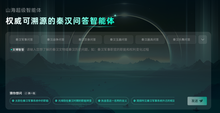 2025年12月26日“山海璇玑”大模型发布,是山海在过去一年里取得的重磅突破。“山海璇玑”是首个中华历史文博垂类大模型,由北京大学历史学系百人学术团队提供全流程学术支持,投入超16000人天,构建了基于秦汉时期的2.7亿字高质量语料与108万条专家问答的知识宇宙,将秦汉官制、地理变迁、礼乐制度转化为可查询、可推理的文明认知图谱,为文化的创造性转化与创新性发展奠定坚实的数字基座。